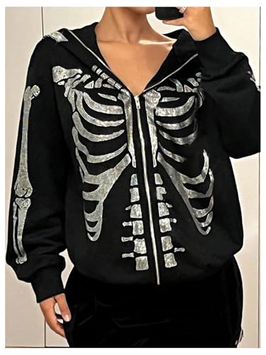 • Features: Y2k zip up hoodies for women, skeleton goth graphic, sparkly rhinestone, hooded, long sleeve, drop shoulder, oversized womens hoodies, fashionable