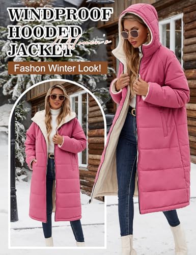 Yusongirl Womens Winter Long Coats Trendy Puffer Jacket Sherpa Fleece Lined Down Coat Long Sleeve Parka Oversized with Hood 3