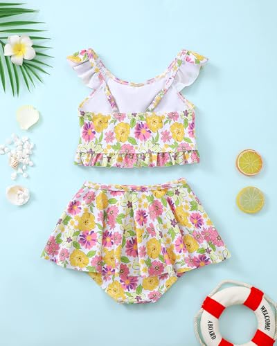 Saeaby Girls 2 Piece Tankini Swimsuit Bathing Suit Adjustable Straps Ruffled Floral Summer Girls' Swimwear for 3-8 Years 2