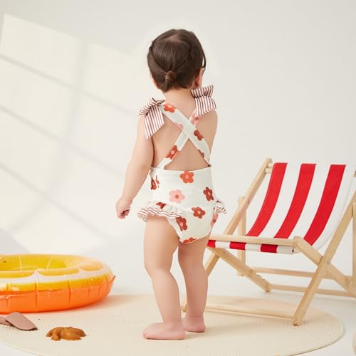 • 【Design】: Toddler girl bathing suits, baby girls' swimwear, sleeveless, backless, U-neck, decorate with bow ties, floral print, ruffled hem, floral swimsuit will surely make your little one stand out in the crowd! little girl swimsuit, the rompers design offers full coverage for toddler girls, your little princess will looks more adorable and attractive.