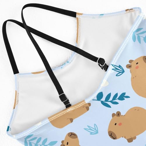 Girls One Piece Swimsuits Cute Capybara Simple Flower Yellow Pattern Cute Swimwear Bathing Suits 3-10T 3