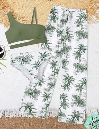 • 【Package Inclusion】The bikini set you get a swimsuit three-piece set: cutout solid color top,tropical print bottoms With Cover Up Pants,Please refer to the size chart before ordering.