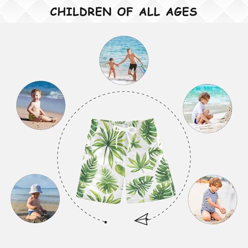 Pigsaly Boys' Swim Board Shorts Watercolor Palm Leaves Boy's Swim Trunks Kids Swimwear M 4