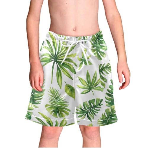 Pigsaly Boys' Swim Board Shorts Watercolor Palm Leaves Boy's Swim Trunks Kids Swimwear M 6