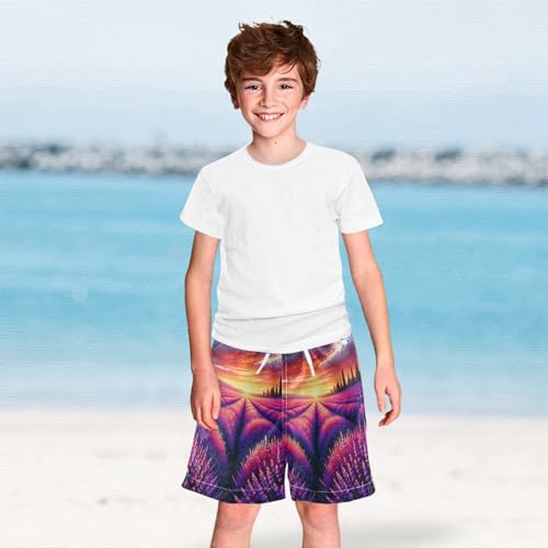 Sunset Lavender Field Boys Swim Trunks Quick Dry Toddler Swimsuit Boy Board Shorts Bathing Suits Swimwear XS 6