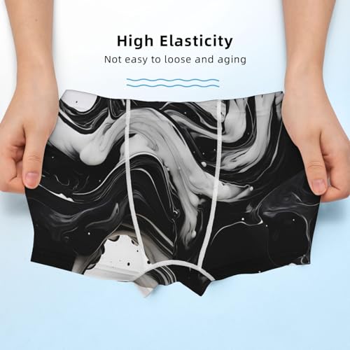 HOT ! Boys' Cotton Boxer Brief Soft Underwear-Fluid Black White Paint Swirls