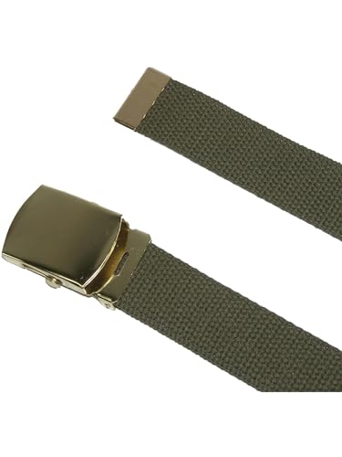 • Brass tone military buckle and matching end tip
