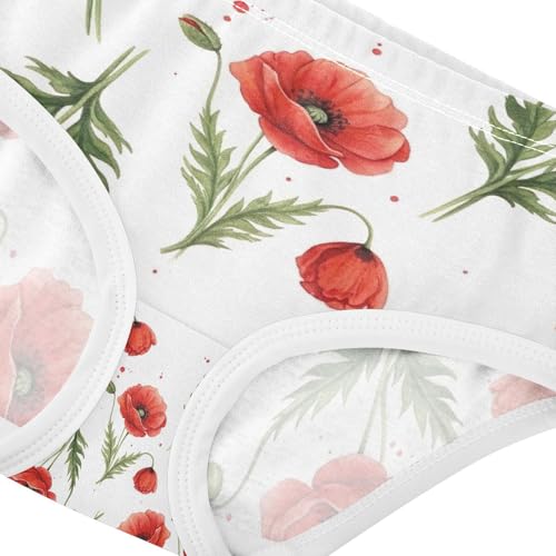 Red Poppy Flowers Green Leaves Toddler Underwear Girls, Girls Underwear Cotton, 2T–8 Years 4