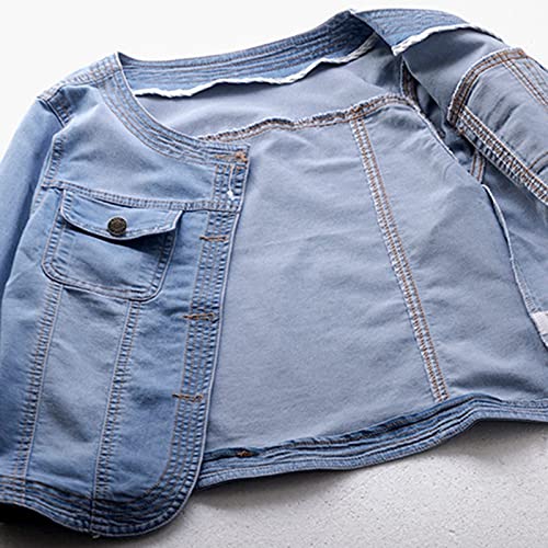 LifeShe Women Cropped Denim Jacket Button Down Collarless 3/4 Sleeve Jean Jacket With Pockets 7