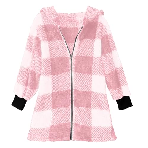 More information about SHOPESSA Fleece Jacket Women Retro Casual Plaid Hooded Coat Thick Warm Zip Up Hoodie Fall Winter Outerwear