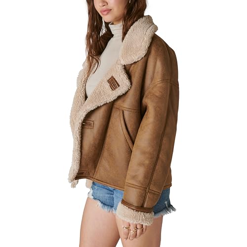HOT ! Lucky Brand Women's Faux Shearling Moto Jacket
