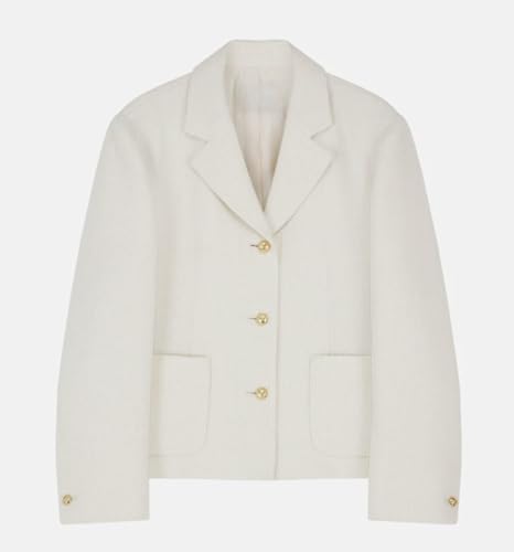 • Unique design: White refined tweed paired with high-quality gold buttons creates a look that is both classic and sophisticated. The simple and neat cut, along with the clean color scheme, gives the outfit a streamlined and elegant silhouette. The lower utility pockets are beautifully embroidered, carefully crafted with tight stitching along the edges and stylish tailoring to achieve a perfect fit. Its classic design and quality materials make it a great choice for your wardrobe
