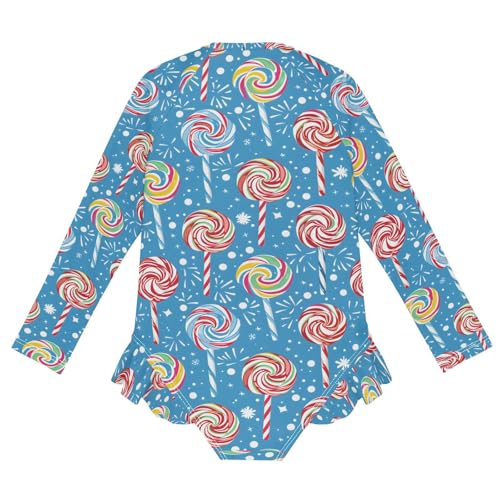 ALAZA Colorful Lollipop Rainbow Blue Girls One Piece Swimsuit Long Sleeve Rash Guard Swimsuits UV 50+ Swimwear Zipper 1