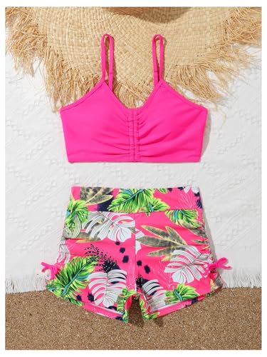 • Features: Girls 2 piece bathing suit set, tropical print, ruched, spaghetti strap, wireless, boho style