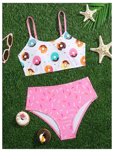GORGLITTER Girl's 2 Piece Swimsuit Graphic High Waisted Bikini Cute Bathing Suits Pink 10Y 2
