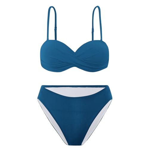 HOT ! Bikini Sets for Women 2025 Push up Mid Rise 2 Piece Bathing Suit Solid Ruched Adjustable Straps Summer Beach Swimsuit