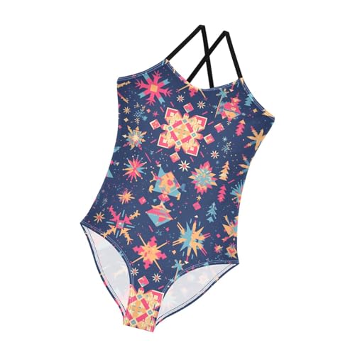 KLL Merry Christmas Multicolored Snowflakes Girls' 1 Piecing Swim Suit Summer Swimming Suits Adjustable Shoulder Strap 6