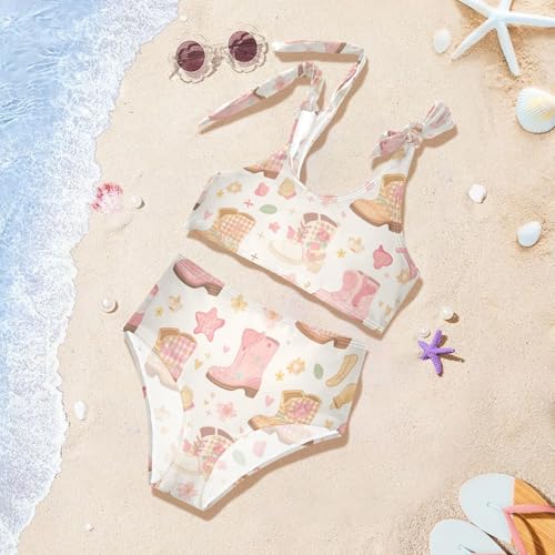 Western Boots Design Boho Scotland Girl Two Piece Kids Bikini Set Beach Swimsuit Swimwear Cute Shoulder Strap 4