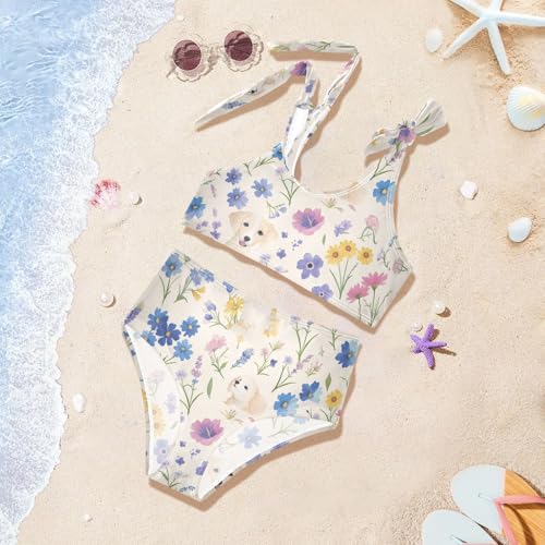 Broken Flowers and Puppies Girls' Two Piece Kids Bikini Set Quick-Dry Bathing Suit Swimming Suits Cute Shoulder Strap 2