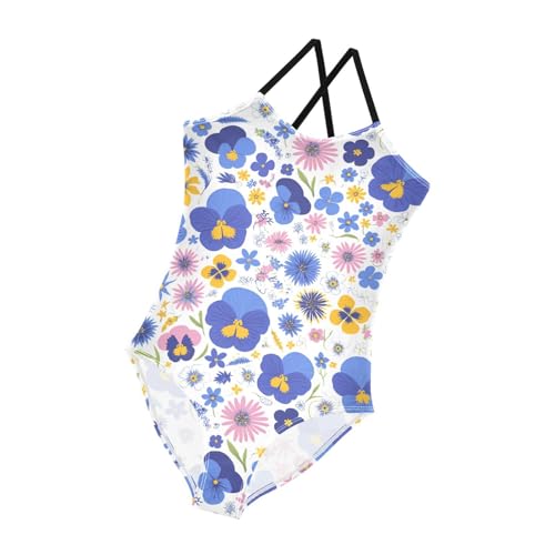 The Garden Tricolor Pansy Flower Kids Girls 1 Piece Swim Suit Beach Swimwear with Adjustable Straps UPF 50+ 6