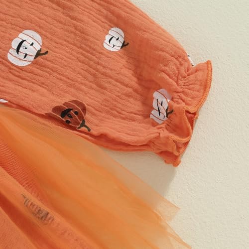 Baby Girl Halloween Outfit Newborn Pumpkin Romper Dress Puff Sleeve Ruffle Bodysuit Jumpsuit Fall Clothes 5