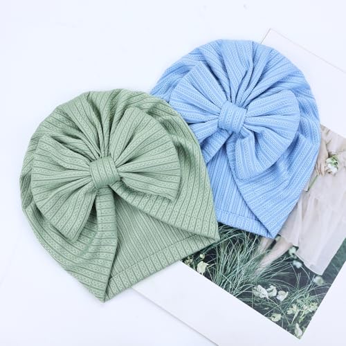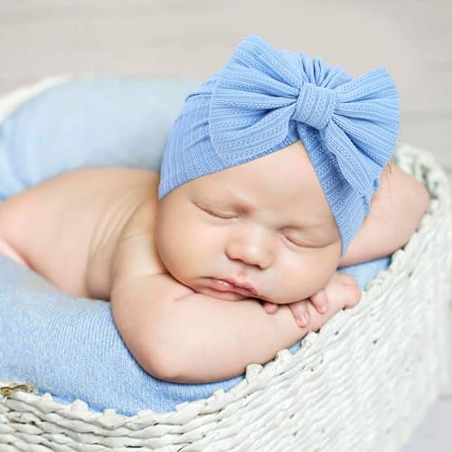 Cinaci 4 Pieces Baby Girls Turban Hats with Bow Newborn Hospital Caps Bonnets Beanies Headwraps for Infants Toddlers 6