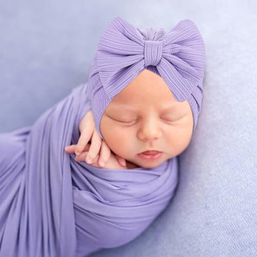 Cinaci 4 Pieces Baby Girls Turban Hats with Bow Newborn Hospital Caps Bonnets Beanies Headwraps for Infants Toddlers 5