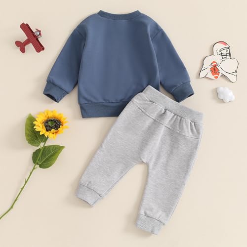Baby Boy Football Outfit Toddler Little Boys Rugby Game Day Clothes Set Letter Print Sweatshirt Tops Pants 2PCS Set 3