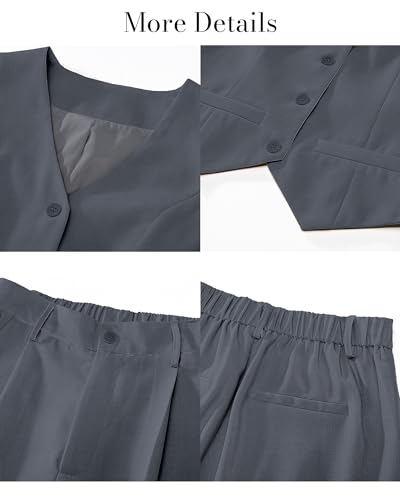 • A 2 piece casual outfits for women features a blazer with classic sleeveless design, v neck, front button-up closures and side jetted pockets.