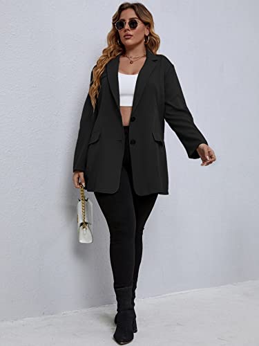 WDIRARA Women's Plus Size Button Front Long Sleeve Blazer Work Office Jacket 2