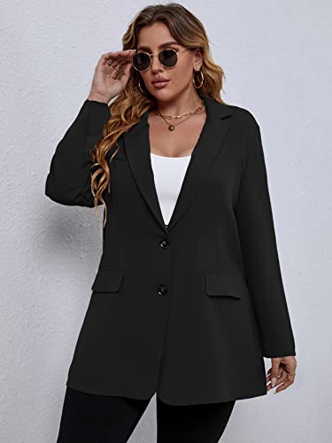 WDIRARA Women's Plus Size Button Front Long Sleeve Blazer Work Office Jacket 1