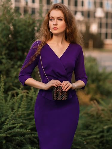 AISIZE Women's 1950S V-Neck 3/4 Sleeve Ruffle Design Cocktail Pencil Dress 1