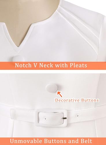 • Style: This retro and elegant dress features a notch v neckline with pleats, short sleeves and a concealed back zipper; Decorative front buttons are fashionable yet classy, Sheath silhouette with Unmovable Belt at waist gives it a polished and professional look----simple novelty design; Back slit for easy walking.
