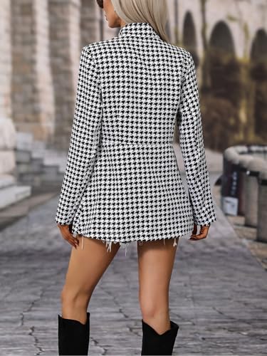 ebossy Women's Casual Houndstooth Plaid Blazer Jacket Elegant Notched Long Sleeve Open Front Slim Fitted Wool Pea Coat 3