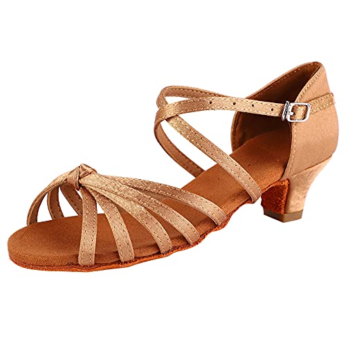 JTLB Latin Dance Brown Children Girl Dance Shoes, 4cm High Heel, Classical & Fashionable, Breathable, Non Deformation Dance Shoes, with Fine Material, (33) 6