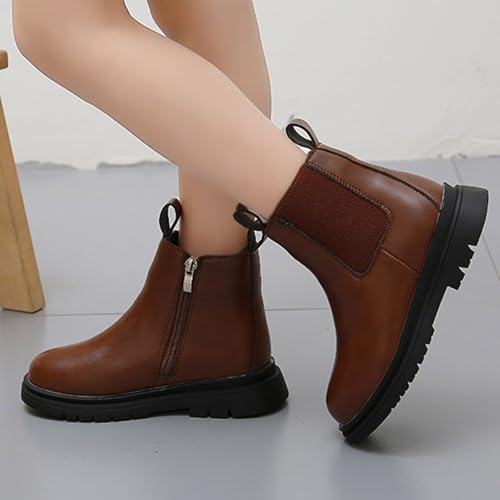Girls Snow Ankle Boots Warm Fur Lined Dress Boots Side Zip Chunky Low Heel Slip On Winter Casual Booties Shoes 6
