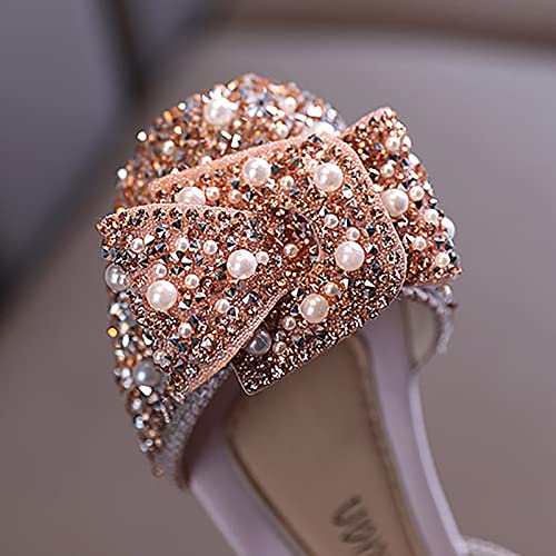 Kids Rainproof Boots Girls Dance Shoes Princess Dress Performance Shoes Flat Bottom Light Pearl Sequin Round Toe 7