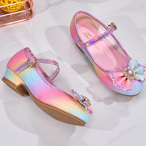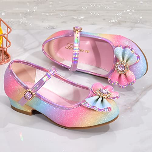Colorful Bowknot Shiny Dress Shoes for Girls Kids Sparkly Ballet Flats Princess Rainbow School Wedding Party Shoes 6