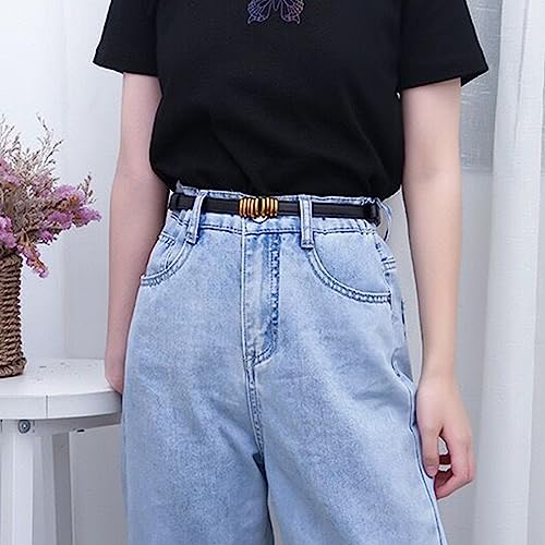 Lady Waist Belt Jean Belt PU Vintage Buckle Casual Ceinture Belt American Street Dance Skinny Belt Elegant Belt, Black 1