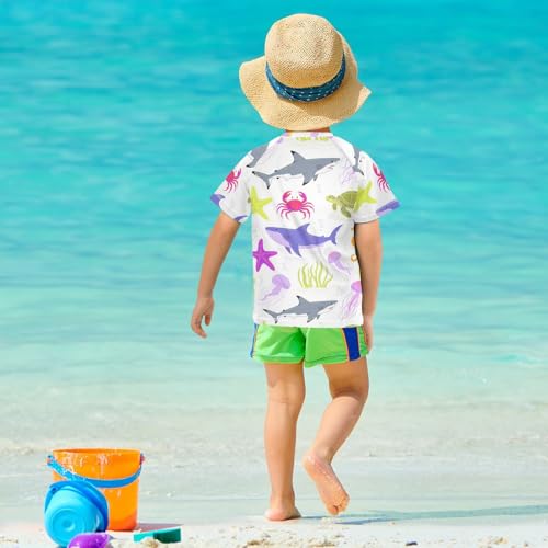 Bright Color Underwater Animal Whale Jellyfish Short Sleeve Kids Bathing Suits Boys Kids Swimsuits for Girls Teen Rash Guard Swimsuit for 3-12 Years Traje de Banos para ninas 5