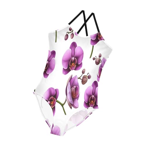 Girl Bathing Suits Beach Bathing Suits Girls 3-10 Y with Adjustable Shoulder Strap, Purple Orchid Flowers White 1