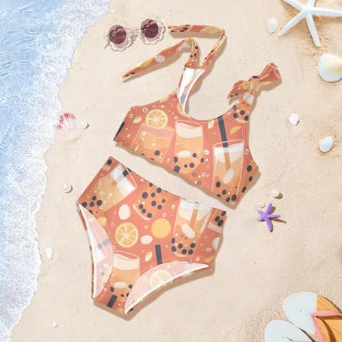 KLL Bubble Tea Pattern Girl 2 Piece Bikini Sets Scoop Neck Swimming Swimwear Swimsuit 2