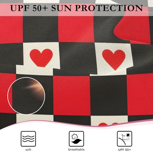 Girls One Piece Swimsuits Long Sleeve Swimsuit Zipper Bathing Suits Red Black Checkered Hearts 5