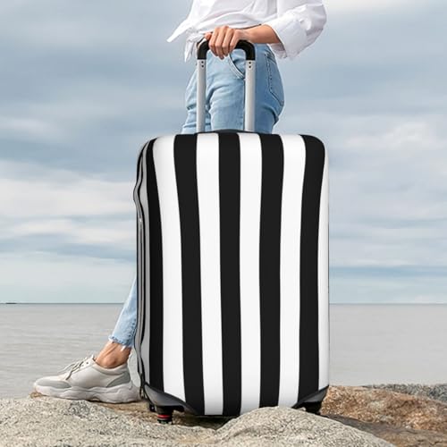 Black And White Stripe Pattern Elastic Travel Luggage Covers Dustproof Scratch-Resistant Suitcase Protector Fit 22-24 Inch 3