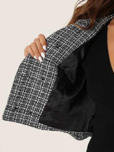 HOT ! Allegra K Tweed Plaid Blazer for Women's Contrast Collar Double Breasted Vintage Cropped Jackets