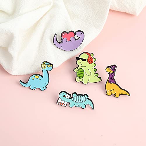 • Design: this cute animal pin set containing 5 dinosaur enamel brooches is designed with dinosaur with a anthropomorphic form: cool dinosaur with headphones; wizard dinosaur who can use magic; caring dinosaur holding a heart; dinosaur lying on the pillow