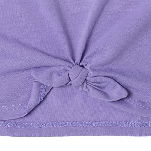 • Rib knit crew neck collar; High low top design; Soft hand screen print design; Knot tie bottom; Pull on closure