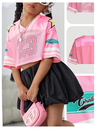 Verdusa Toddler Girl's Summer Jersey Shirts Half Sleeve Crop Tops V Neck Graphic Tees 5