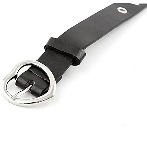 Women Waistband Female Belt Pants Wide Leather Belt with Silver Metal Heart Buckle Black 6