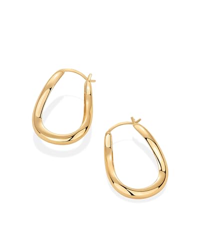 HOT ! PAVOI 14K Gold Plated Sterling Silver Posts Chunky Wavy Hoop Earrings for Women | Lightweight Statement Twisted Endless Wave Hoops Earrings